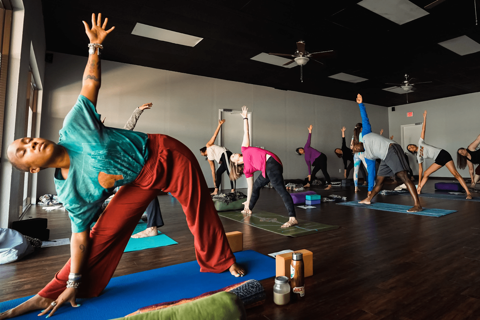 В раздевалках есть душевые для тех, кто ходит на более интенсивные занятия, а также шкафчики для личных вещей. Студия имеет несколько залов для того, чтобы одновременно могли заниматься несколько групп с разными направлениями. В общей сложности, в неделю проходит около 90 тренировок с 7 утра до 20 вечера. Именно поэтому в студии работает отопление, можно перекусить, приобрести воду, в целом, созданы все условия, чтобы персоналу и клиентам было комфортно в течение всего дня. Кроме того, существует широкий выбор занятий для любого уровня способностей и опыта, возраста и т.д. К примеру, хатха, виньяса флоу, аштанга, айенгар, инь-йога и восстанавливающая йога.